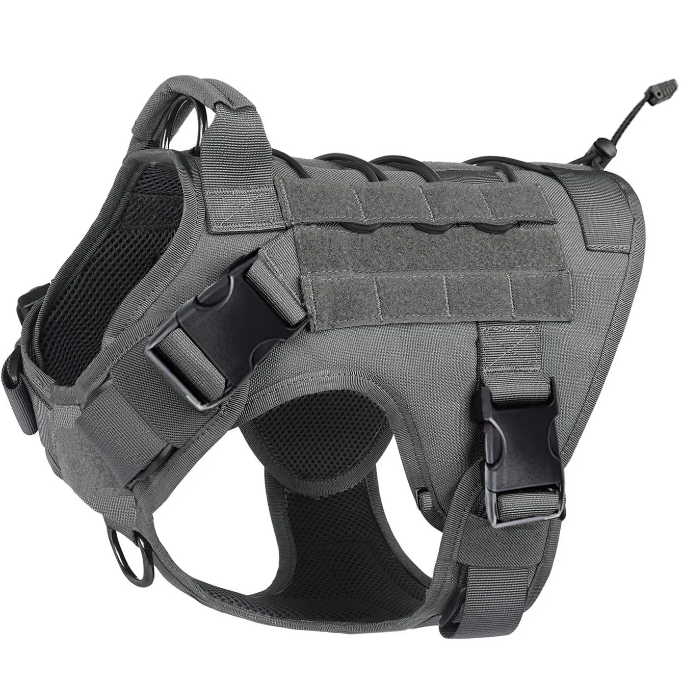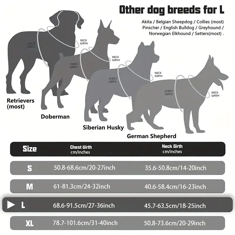 This standard black dog harness is a vest-style design made of durable nylon. It features a secure buckle closure and reflective accents for added safety during walks. Suitable for all life stages, it is practical, comfortable, and not customizable.