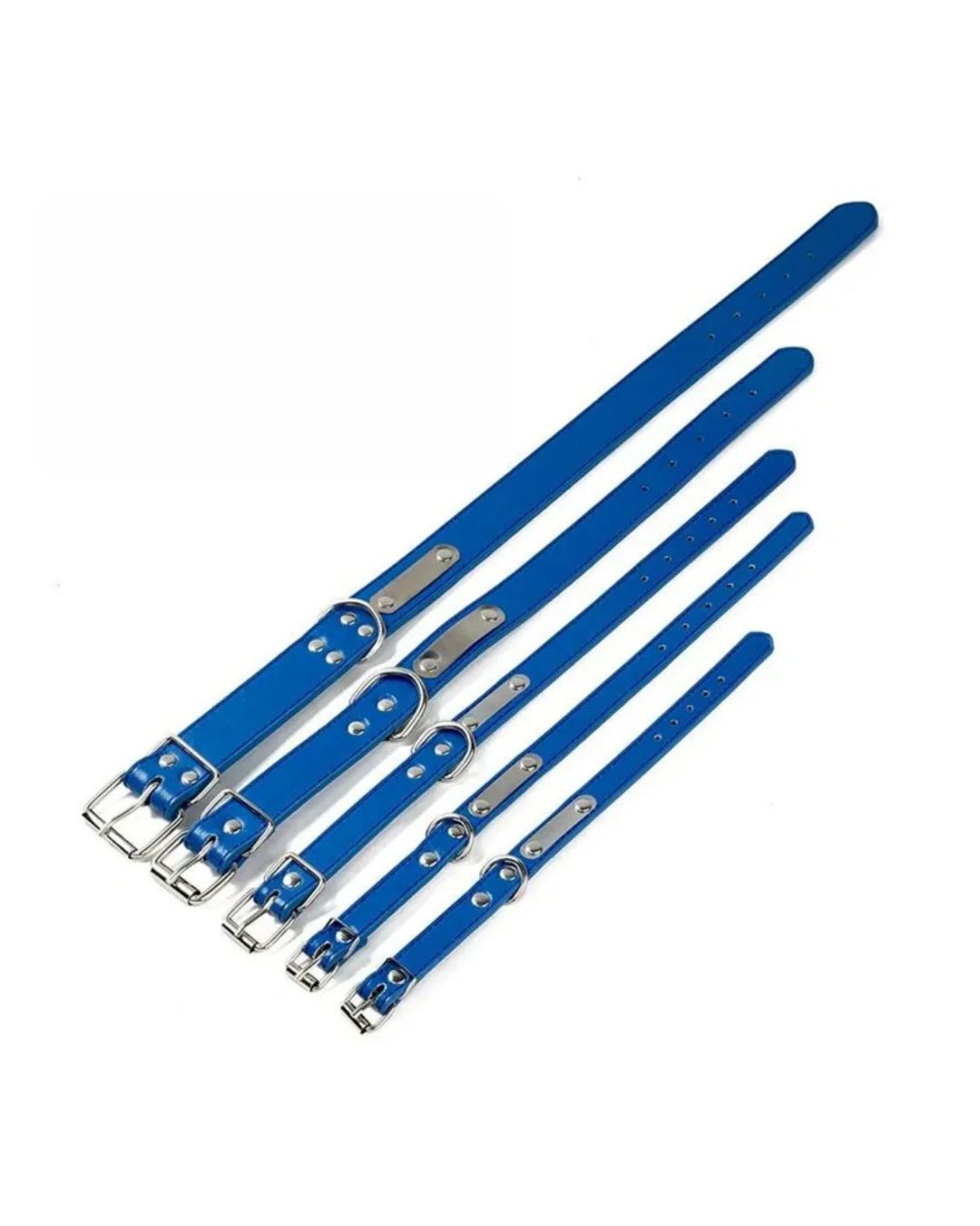 Personalized PU leather dog collar with durable buckle, padded comfort, and breakaway safety. Comes with engraved name and phone tag. Available in red, black, brown, pink, and navy blue. Perfect for small to large dogs.